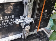 В первую очередь был установлен цветник и подставки под вазы, далее уложен пол из гранитных обожжённых плит (на них сложнее поскользнуться в холодное время года и можно уверенно ходить во влажную погоду). После этих пыльных работ настало время гравировальных работ, требующих очень аккуратного подхода к исполнению.