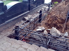 После того, как работа была проведена, клиент посчитал, что в задней части места захоронения требуется дополнительное укрепление. Мы вкрутили пять дополнительных свай, сварили новую сетку и залили ещё одну площадку, которая будет являться основанием для памятников.