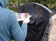 Сочтя фотографию готовой к гравировке и согласовав результат ретуши с клиенткой, мы приступили непосредственно к работам на могиле.